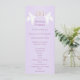 Hochzeitsordnung Taubendesign. Passen Sie dieses lila gefärbte Hochzeitsprogramm mit Ihren Hochzeitsdetails an. Sollten Sie Hilfe bei der Anpassung benötigen, kontaktieren Sie uns bitte über den Link auf dieser Seite. Dove Design Lila personalisiertes Hochzeitsprogramm