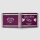 Das Design zeigt Tauben und verlinkte Herzen auf einem lila Hintergrund mit Bandbreiten. Raum, um den Namen des Paares auf der Vorderseite und Namen und Datum auf der Wirbelsäule. Auf der Rückseite wird ein Herz-Monogramm mit den ersten Initialen des Paares gezeigt. Erhältlich in mehreren thematisch gefärbten Hintergründen. (Die Multifunktionsleiste wird im Kunstwerk simuliert). Konzipiert zur Koordination mit der "Two Shall Become One - Silver & Gold" Wedding Collection. Klicken Sie zum Ändern der Details auf "Personalisieren". Um den Text zu verschieben oder die Textgröße, den Schriftart oder die Textfarbe zu ändern, klicken Sie auf "Klicken Sie, um den Text weiter anzupassen".