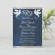 Dieses romantische Design zeichnet sich durch einen eleganten, blauen Hintergrund mit Bandgrenzen, verlinkten Herzen & Tauben mit Details für die Veranstaltung in elegantem Drehbuch auf der Vorderseite und einem QR-Code, mit monogramm Platzhalter und Platz für Ihre Website auf der Rückseite aus. Erhältlich in mehreren Farben für Ihre Hochzeitsfarben. (Die Multifunktionsleiste wird im Kunstwerk simuliert). Konzipiert zur Koordination mit der "Two Shall Become One - Silver & Gold" Wedding Collection. Klicken Sie zum Ändern der Details auf "Personalisieren". Um den Text zu verschieben oder die Textgröße, den Schriftart oder die Textfarbe zu ändern, klicken Sie auf "Klicken Sie, um den Text weiter anzupassen".