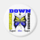 Down-Syndrom Schmetterlingsknöpfe, Buttons, Magnete und einzigartige Geschenke im auffallenden Quadrat-Design mit grunge-gelben und blauen Schmetterling, um die Bedeutung von SUPPORT, LIEBE und ACHTUNG zu unterstreichen.