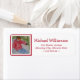 Herrliches Adressetikett können Sie individuell gestalten - für Ihre besten Freunde, Familie, Geburtstage, Abschluss oder für sich selbst! Downhill Skier in roter Jacke, blaue Jeans und orangefarbene Brillen, die den Skiberg hinunter ragen - wurde vom Designer in Aquarellen gemalt.