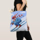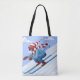 Der Abfahrtsläufer, der die Pisten hinunter fährt. Dieses Design sieht auf dieser Totbeutel wirklich effektiv aus