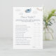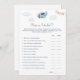 Blauer und tan Vintage Reise Thema Babydusche "Over or Under" herunterladbare Spielvorlage mit einer Aquarelldarstellung eines niedlichen Flugzeugs mit Party-Garland und Wolken.
