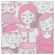 Dieses zeitgenössische Design zeichnet sich durch ein handgezeichnetes Muster junger Männer und Frauen aus, die in einer belebten Fußgängerzone in der Innenstadt zu sehen sind. Die Farbpalette ist in Rosa und Grautönen gehalten, der weiße Hintergrund kann jedoch nach eigenem Geschmack verändert werden. Suchen Sie ID494, um weitere Produkte mit diesem Design zu sehen.