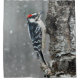 Downy Woodpecker in Snow - Original Foto Duschvorhang
