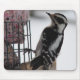 Fotografie durch den Künstler, Angelandspot. Dies ist ein Downy Woodpecker, der herumklammert und dem Künstler lasse, mit der Kamera nah zu werden, solange es Essen zum Essen gibt. Die Künstlerin wird so nah, dass sie sich ausstrecken und den Vogel Touch, weil dieser Downy keine Angst vor dem Künstler hat.