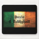 Doyle-Nachname (englische und irische Fassung) im extravaganten Schriftart auf Hintergrund der irischen Flagge