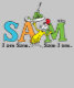 Don't knock it until you try it, you might just like it! GREEN EGGS AND HAM is hat Dr. Seuss story where Sam-I-Am tries to get his friend to try some green eggs and ham, and he does indeed end up loving them klassifiziert. Check out Sam-I-Am Holding up a sign with his name on it.