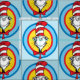 Karo diese lustige Katze in der Hutgrafik mit farbenfrohen konzentrischen Ringen heraus!