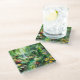 Auf einer Blume in einem mystischen Garten mit Wasserfällen und üppiger Flora thront ein lebhaft gerenderter grüner Drache.