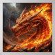 In Flammen verschlungener, serpentiner Drache. Die Skalen sind sehr detailliert und zeigen eine Mischung aus tiefen Rot- und Orangen, die eine intensive Hitze vermuten lassen. Die heftigen Augen des Drachen leuchten hell und erwecken ein Gefühl von Power und Bedrohung. Rauch- und Knollenfische wirbeln um sich herum, was zu einer allgemeinen Atmosphäre des Chaos und der Intensität beiträgt. Der Hintergrund weist dunkle, stürmische Wolken auf, die den dramatischen Effekt noch verstärken. Diese gewaltige Kreatur scheint aus einer feurigen Landschaft zu entstehen, die einen Eindruck von Dominanz und roher Stärke vermittelt.