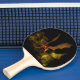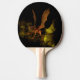 Auf diesem Ping Pong Paddle hält ein orangefarbener Drache zwischen Felsen in der Luft. Ideal für alle, die Fantasie, Mythos und fantastische Tiere Lieben.