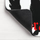 Schwarze Drache-Silhouette auf mousepad mit rotem Text.