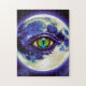 Dieses surreale, abstrakte Bild zeigt ein regenbogenfarbenes Drachenauge in einem majestätischen Mond. (a.I. generiert)
