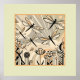 Dieses elegante Kunstwerk vereint einen ruhigen Moment, in dem Libellen anmutig über einem stilvollen Art-Déco-Garten gleiten. Die Libellen, die in sanften, gedämpften Tönen mit schwarzem Akzent dargestellt werden, schweben inmitten einer zarten Blume und geometrischen Mustern. Die Komposition verbindet fließende, Bio Linien mit sauberen, symmetrischen Formen und schafft ein harmonisches Gleichgewicht zwischen Natur und Geometrie. Die Farbgestaltung in Beige, Pfirsich und Schwarz erinnert an eine nostalgische und zeitlose Atmosphäre, die von klassischen Art-Déco-Motiven gezeichnet wird. Dieses Stück lädt die Zuschauer ein, die ruhige Schönheit und anmutige Einfachheit der Natur durch eine Vintage Linse zu erleben.