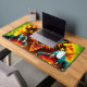 Diese Schreibtischmatte hat Drachenkunst darauf.
