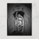 Ein Foto in Schwarz-Weiß einer alten Statue eines männlichen Engels, der einen Drachen schrieb. Das war auf der Seite eines französischen Gebäude. Auf einer Postkarte gedruckt.