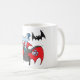 Dieses Design ist Dracula und eine Fledermaus. Dracula hat seinen Kap offen und es fliegt eine Fledermaus herum. Dieses Dracula und Fledermausdesign sehen großartig auf dieser Tasse aus