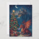 Cool Dragon on Christmas Day by a tree and gifts, Holiday Card.