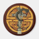 Ein runder, traditioneller keltischer Schmuck als Hintergrund mit einem keltischen Steinkreuz und einem grünen östlichen Drachen, der sich um ihn zieht. Ein einzigartiges Fantasy Art Design und ein großartiges Geschenk für Drachenfreunde und Fantasy-Fans.