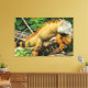 Schönes Bild einer hellbraunen und orangefarbenen Dracheneidechse. Er schläft auf einem langen Ast. Mit dem grünen Wald hinter ihm. Die Sonne scheint auf ihm, um ein orangefarbenes Glühen auf dieser überzogenen Leinwand zu geben