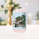 Ein niedlicher, grüner Drache, der mit seinem Teddybär, seiner Kerze, seinem Federstift und seiner Lesebrille in einem blauen Hintergrund schlummert