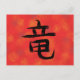 Eine wunderschöne Postkarte mit dem Kanji für Drachen und Kaiserliche. Die Bedeutung des Kanjis liegt auf der Rückseite der Postkarte.