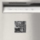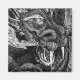 Ein Drache lauert in einem tiefen Untergrund in einer Höhle. Kühlschrankmagnet mit einem Schwarz-Weiß-Design, das Sie individuell gestalten können, um mit Ihren eigenen Texten, Bildern und Ideen zu personalisieren. Eine originelle Tinte, die von Jess Perry gezeichnet wird.
