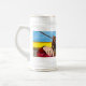 3D digitale Darstellung einer schönen Drachenlady mit einem kleinen Drachen auf ihrem Arm auf einer märchenhaften Burg und einem blauen Himmelshintergrund