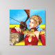 3D digitale Darstellung einer schönen Drachenlady mit einem kleinen Drachen auf ihrem Arm auf einer märchenhaften Burg und einem blauen Himmelshintergrund