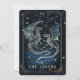 Die Liebe Dragon Written in Stars - Tarot Wedding Einladung, wo die magischen Reiche des Tarots und die mythische Welt der Drachen nahtlos zusammenkommen. Dieses mystische, mythische und romantische Thema zeigt zwei Drachen in der Liebe und spiegelt die Symbolik der Tarot-Karte "Die Liebenden" wider. Ideal für Hochzeiten mit einem mystischen oder mittelalterlichen Thema, für Tarot-Liebhaber, Game of Thrones-Fans und Drachenfans gleichermaßen. Die Aufnahme von Monogrammen verleiht der Einladung mehr Charme. Das Design mit klassischen dunkelblauen und goldenen Farbtönen strahlt himmlische Eleganz aus, wobei die Details sowohl auf der Vorder- als auch auf der Rückseite faszinierend sind. Die Formulierung ist vollständig editierbar. Sie können Größe, Farbe, Schriftart, Position ändern.