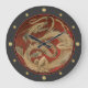 Dramatisch Vintage Fantasiewelt im Jugendstil mit einem dunkelroten Drachen in einem Kreis mit schwarzem Hintergrund und roten Akzenten