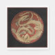 Dramatische Fantasy-Szene im Jugendstil zeigt einen Drachen auf dunklem Rot in einem Kreis mit rotem Hintergrund und schwarzen Akzenten.