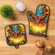 Dragon Oven Mitt and Pot Holders Ofenhandschuh & Topflappen-Set
