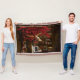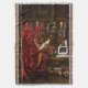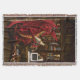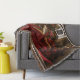 Roter Drache saß in seinem Computer und las ein Buch. Um ihn herum gibt es viele Schätze aus all seinen Abenteuern.