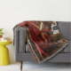 Roter Drache sitzt in seinem Computer und las ein Buch. Hinter steht die Podcasting-Ausrüstung, der Computer und ihre Schätze.