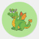 Aufkleber in kleiner runder Form mit niedlichem grünen Drachenprint. Anpassen oder kaufen, wie es ist.