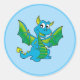 Aufkleber in kleiner runder Form mit niedlichem blauen Drachenprint. Anpassen oder kaufen, wie es ist.