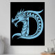 Dragon Styled Letter D, Dragon Alphabet, Monogramm Foliendrucke