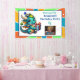 Blauer, grüner, gelber und orangefarbener Drachenbanner zum Geburtstag eines Jungen personalisiertes Foto Banner. Niedlich für jeden kleinen Jungen, der Drachen Liebe! Niedliche Cartoon Drachen in Geburtstagshüten mit Geburtstagskuchen.