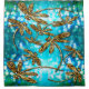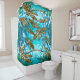 Ein hübscher Duschvorhang mit Libellen-Motiven in Gold, Türkisblau und Grün.