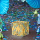 Herrliche blaue und bronzene geflügelten Libellen fliegen auf einem goldgelben Hintergrund. Fügen Sie eine Nachricht oder einen Titel hinzu, um sie perfekt zu machen.