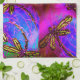 Herrlich gelbe geflügelte Libellen flitzten auf einem psychedelischen Hintergrund. Von meinem Original-Kunstwerk. LyndseyArt