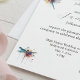 Diese bezaubernde Hochzeitseinladung ist schön dekoriert mit farbenfrohen Wasserfarben-Libellen, die Liebe, Veränderung und Neuanfang symbolisieren. Die Libellen sind zart in Blau-, lila-, Grün- und Gelbtönen gestrichen und strahlen ein charmantes und romantisches Ambiente aus. Die Namen des Ehepaares werden in einem eleganten römischen Schriftart und in einem großartigen Ambiente präsentiert. Diese Einladung Set den perfekten Ton für eine magische und unvergessliche Feier.