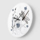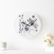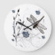 Schöne Wanduhr mit Blume und Libellendesign. Weißer Hintergrund mit Kunstwerken in Blues-, Grau-, Schwarz- und Braun-Tönen. Sagt "Dragonfly Liebe" Design funktioniert am besten auf dieser Großuhr.