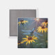 Dieser Magnet verfügt über eine blaue Libelle, die auf einer schwarzen mit Augen Susan ruht.