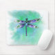 Dieses Drachenfliegenmousepad besticht durch eine aquamarine, lila und grüne Libelle in Aquarellfarbe. Ein nettes Geschenk für einen Drachenflieger.