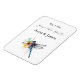 Ein charmanter Save the Date Magnet mit einem zarten Aquarelldrachenflieger mit dynamischen, leuchtenden Flügeln in Blau, Gelb und Rot, die eine skurrile, aber elegante Touch hinzufügen. Der Text ist wunderschön in einer Kombination aus römischen Emeline- und Garamond-Schriftart gestaltet und verbindet moderne Eleganz mit zeitlosem Klassizismus. Der weiche, cremefarbene oder elfenbeinfarbene Hintergrund verstärkt den ätherischen Aquarelleffekt und schafft eine traumhafte und romantische Ästhetik. Ideal für Hochzeiten und besondere Anlässe, dieser Aufkleber erweckt die Schönheit der Natur mit einem raffinierten, künstlerischen Flair.