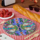 Die lebendige Bewegung der Libellen, die durch einen Wildblume-Garten ziehen, wird auf farbenfrohen Tellern aus abstraktem Party mit einem Kaleidoskop von Farben eingefangen, die sich perfekt für Frühlings- und Sommerstimmungen eignen. ♡ Idyllfire