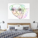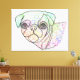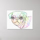 Ein Draht-Mops auf einem mehrfarbigen Hintergrund.